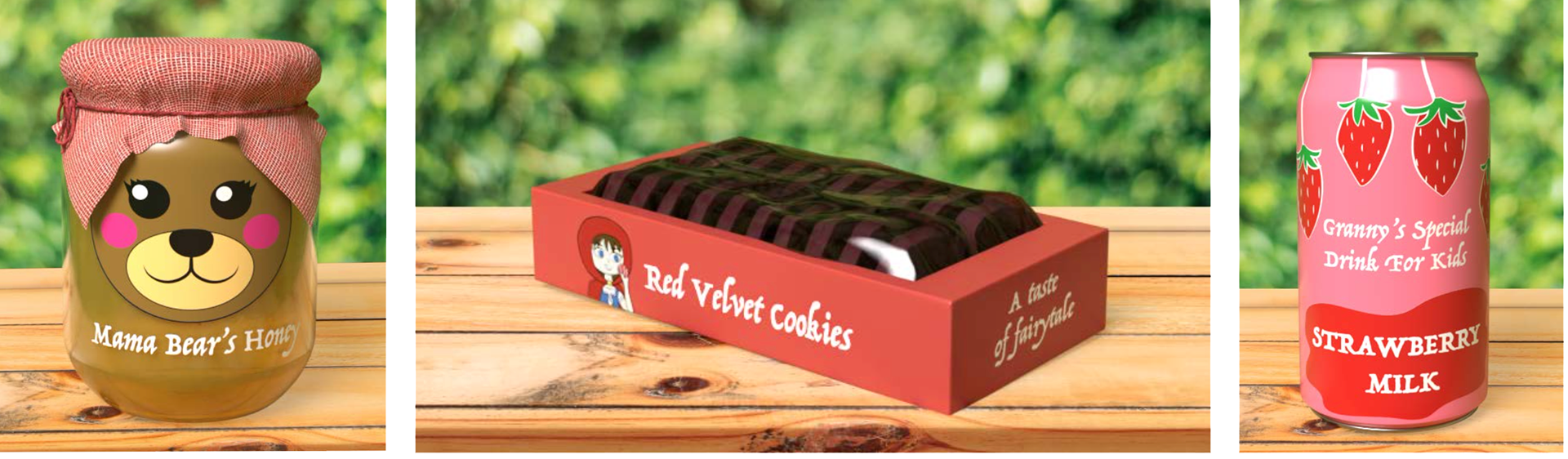 A sweets basket packaging project inspired by Little Red Riding Hood.